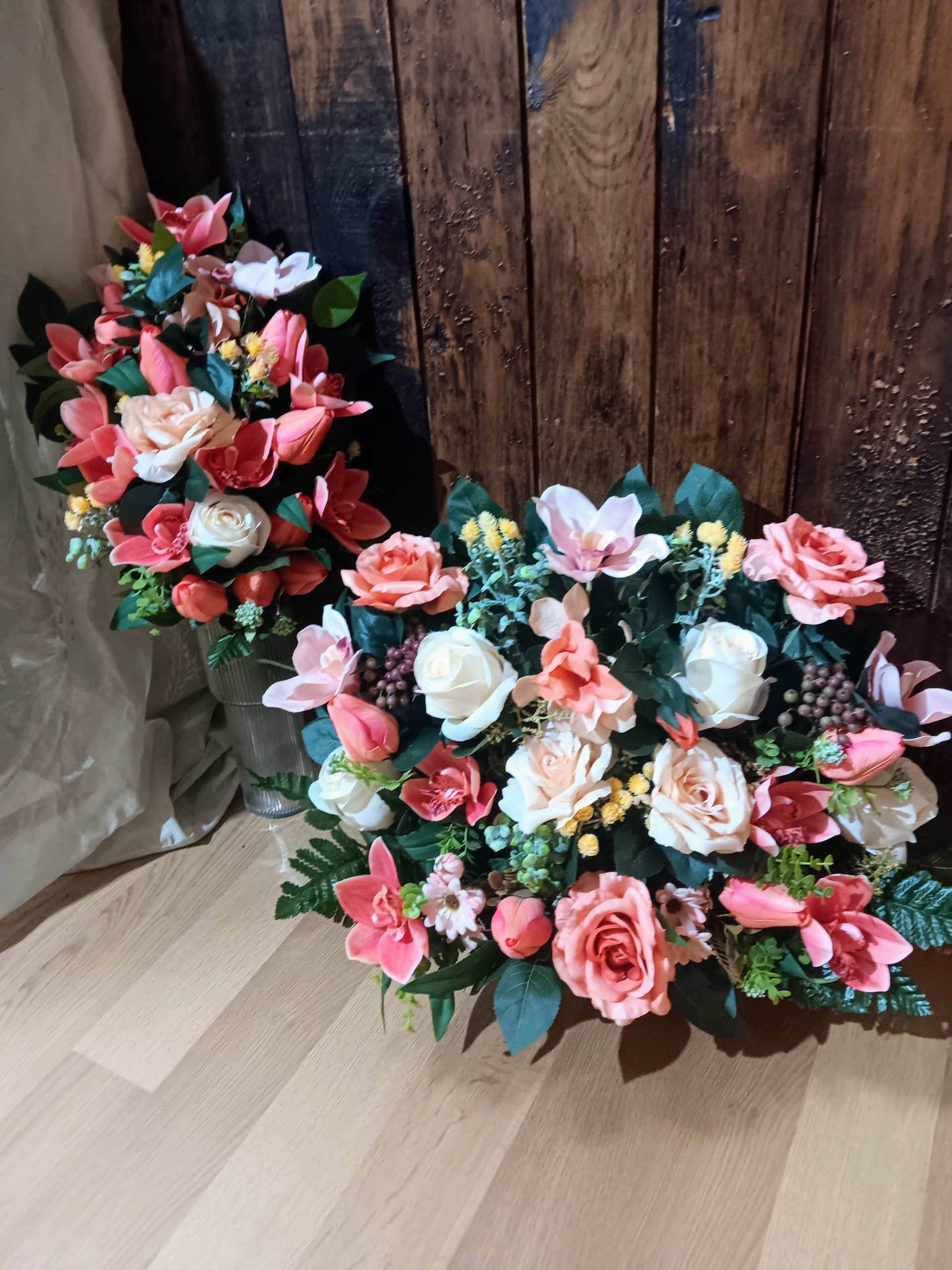 + Free ShippingPrecioso conjunto de centro y ramo de flor artificial de condolencias para el día de todos los Santos.